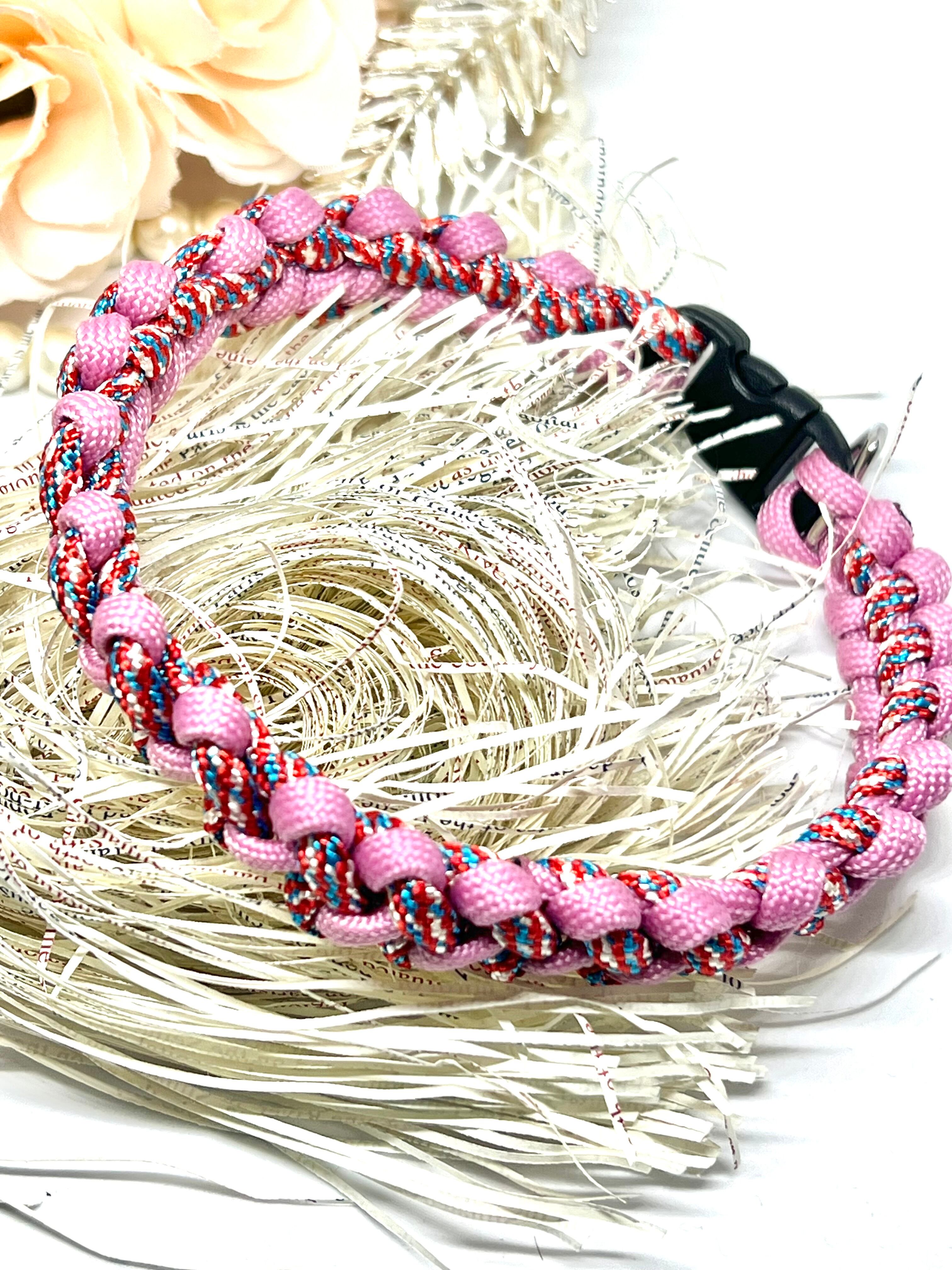 高強度のナイロン製で、丈夫さ抜群のパラコード犬用首輪。デザインAはシンプルでありながら特徴的な模様です。